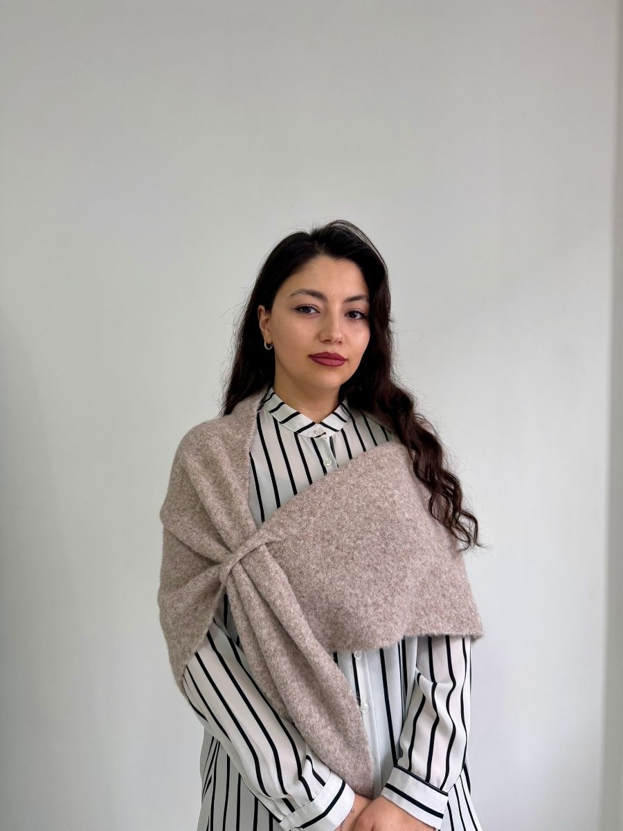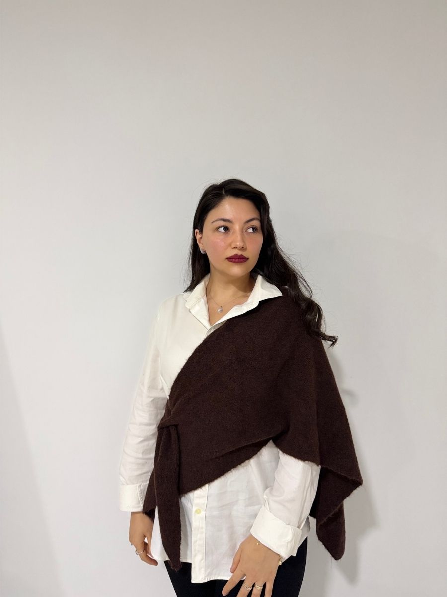 İçten geçirmeli triko üçgen şal, pratik kullanımı ve zamansız tasarımıyla günlük ve klasik kombinlere şık bir tamamlayıcı sunar. Yumuşak triko dokusu sayesinde gün boyu konfor sağlar.