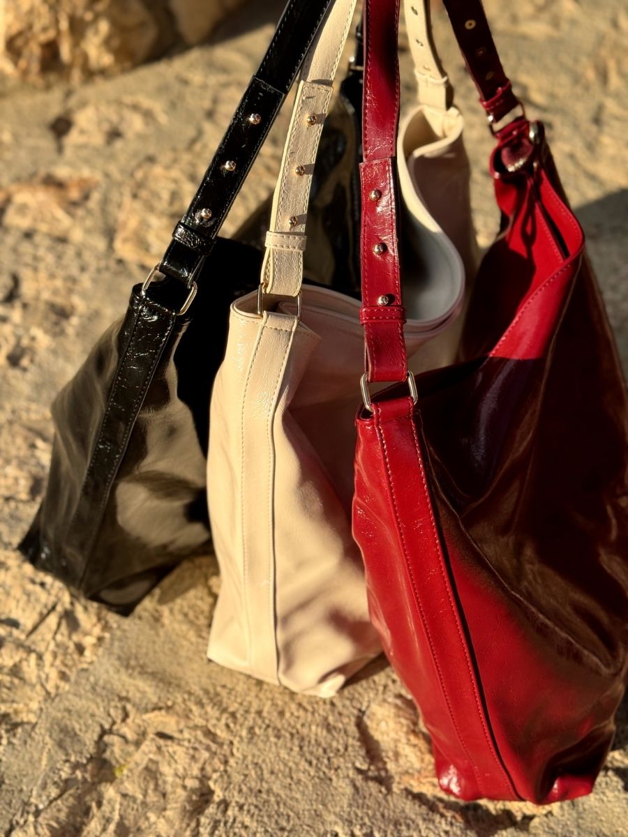 Işıltısı, dokusu ve zarafetiyle dikkat çeken Rio Rugan Çanta, Blackbird Luxe kadınının özgüvenli duruşunu yansıtıyor. Şehir hayatının temposuna uyum sağlayan geniş iç hacmiyle konforu, parlak rugan yüzeyiyle ise modern bir şıklığı bir araya getiriyor.